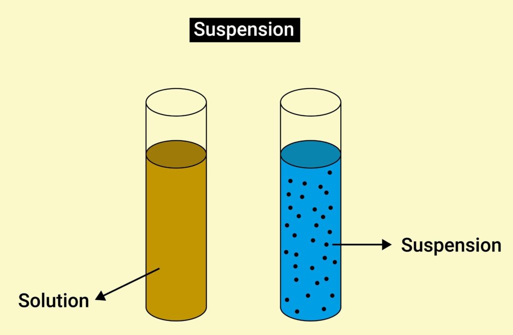 In een suspensie lost het medicijn niet op; de fijngemalen deeltjes zweven in de vloeistof.